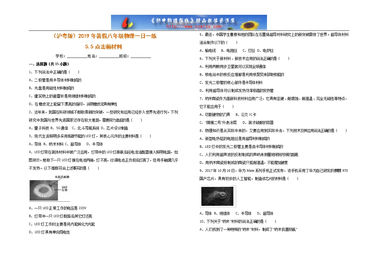 (沪粤版)2019年暑假八年级物理一日一练:5.5 点击新材料