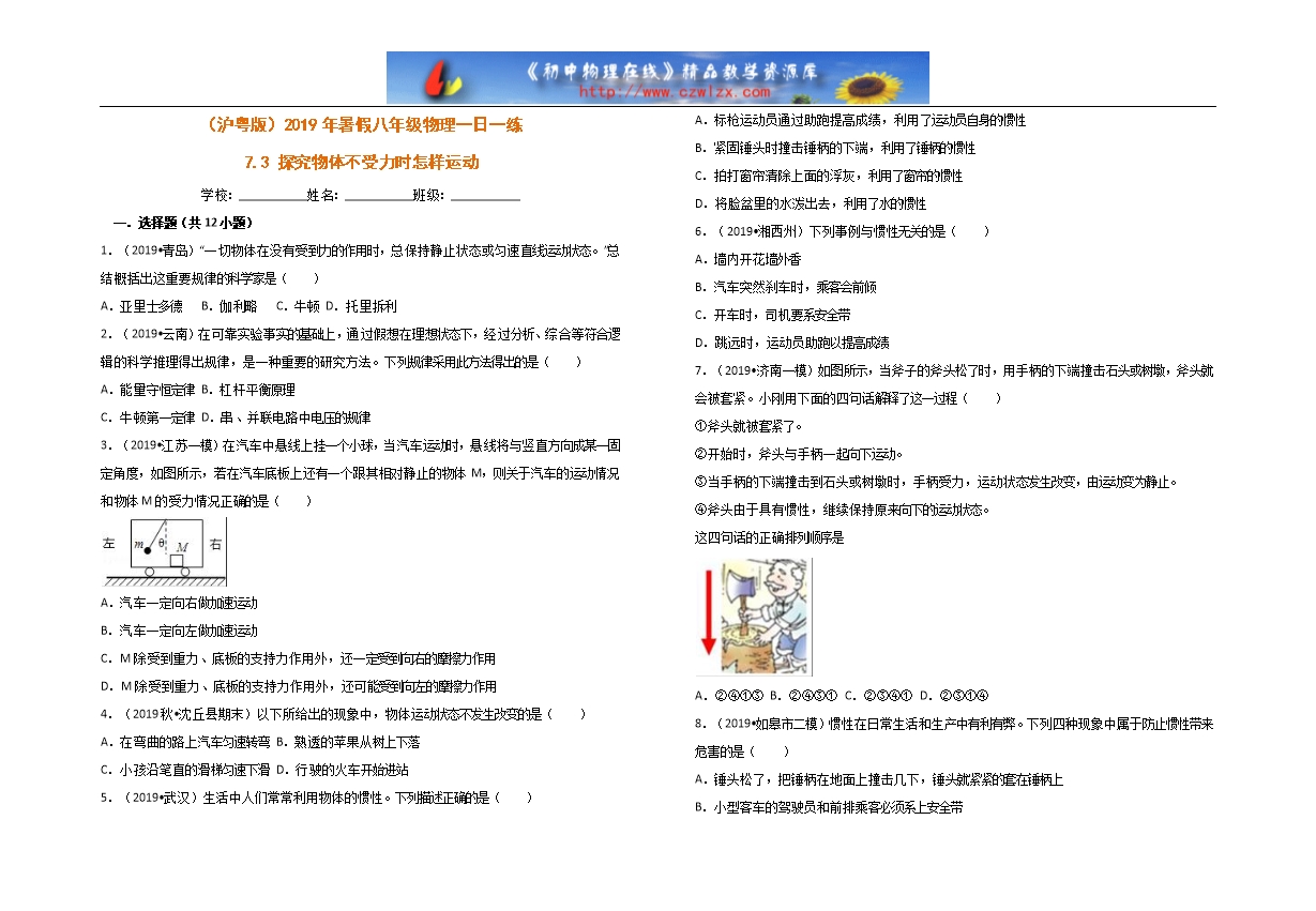 (沪粤版)2019年暑假八年级物理一日一练:7.3 探究物体不受力时怎样运动