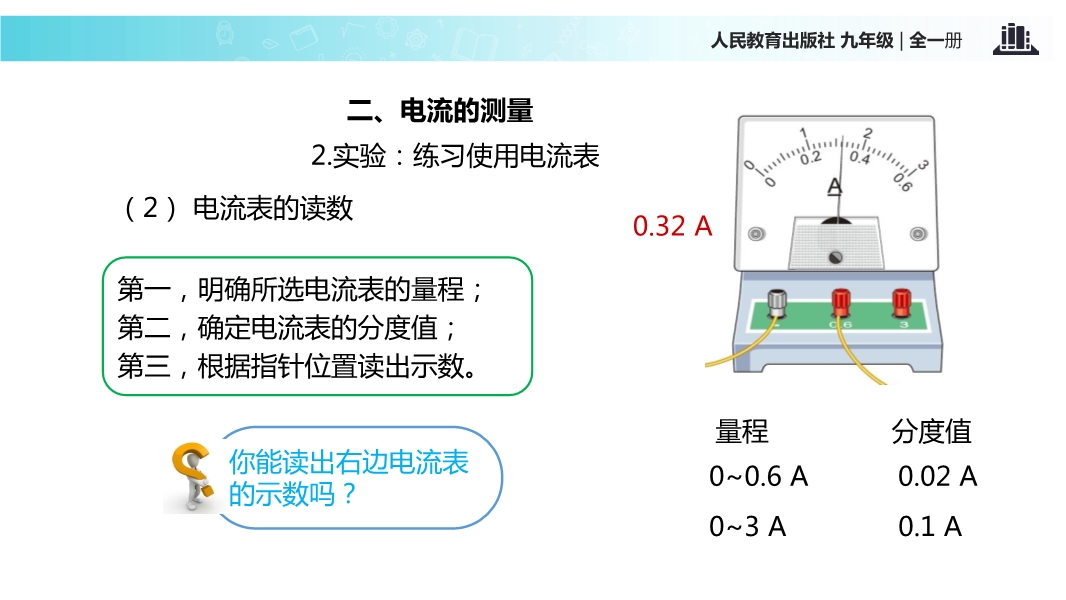 - 602025-2026学年新人教版九年级上学期物理课件:15.4电流的测量