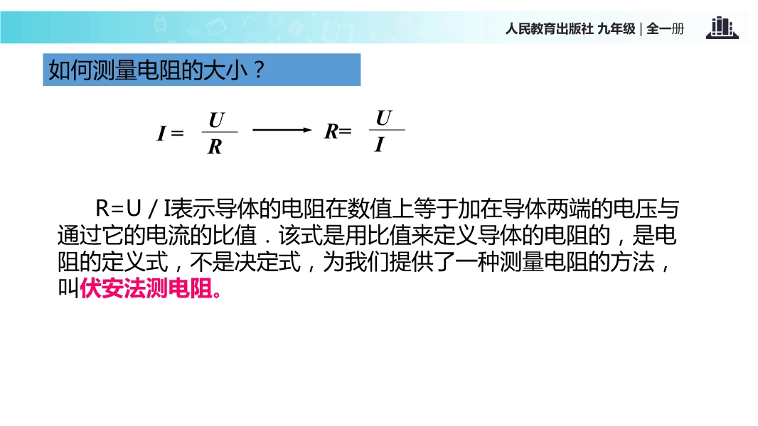- 1701【教学课件】人教版九年级物理 第十七章 欧姆定律 第3节 电阻的测量 精品课件与配套教案
