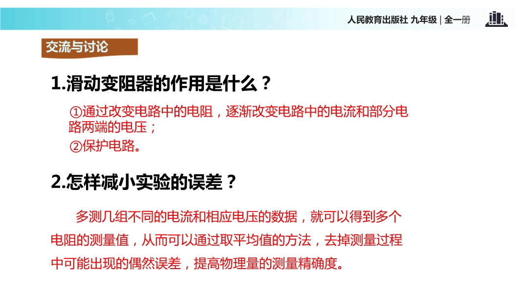 - 961人教版九年级物理全册《17.3 电阻的测量(第一课时)》同步课程教学视频(北京师范大学附属实验…