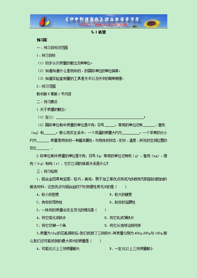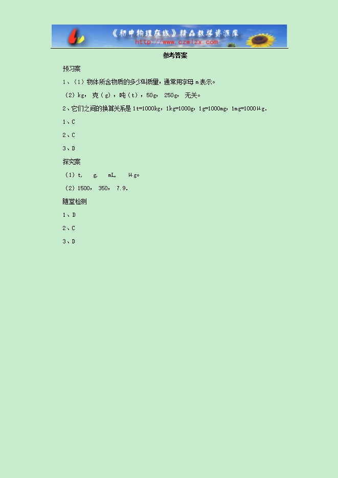 沪科版全册八年级物理同步导学案:第5章 质量与密度 (共5份打包)