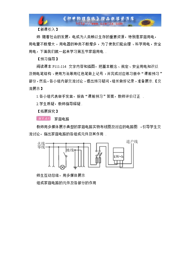 2019沪科版九年级物理全册教案+课件:15.5家庭用电