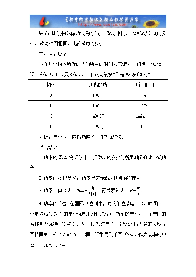 【内容简介】2019秋沪粤版九年级物理上册教学课件+教案:11.2怎样比较做功的快慢