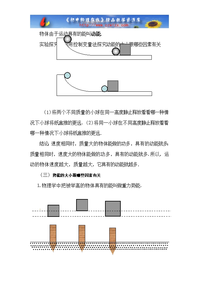 2019秋沪粤版九年级物理上册教学课件+教案:11.4认识动能和势能