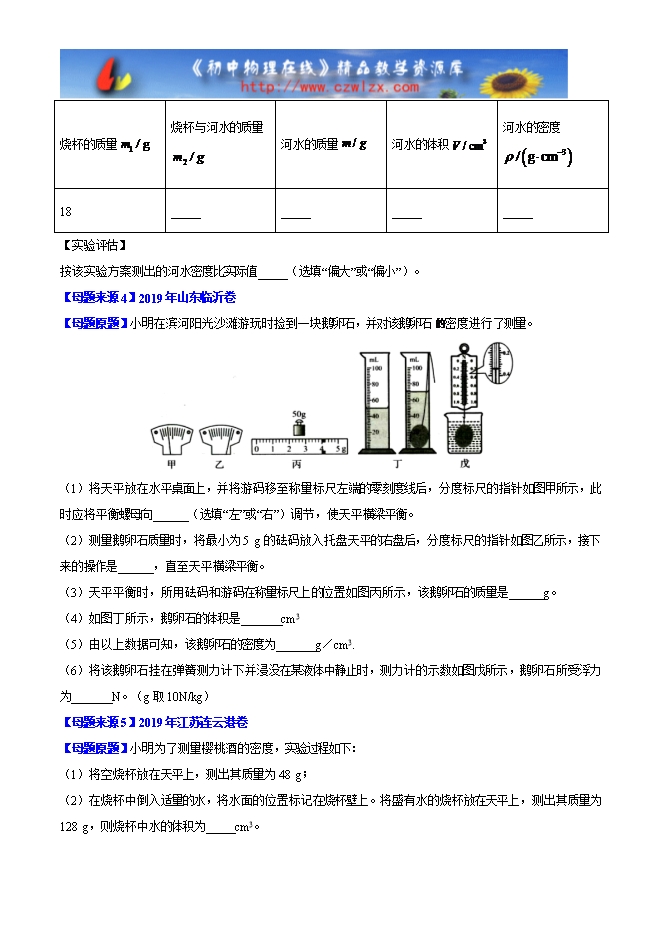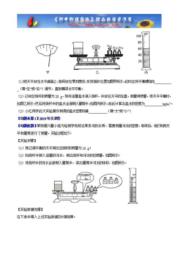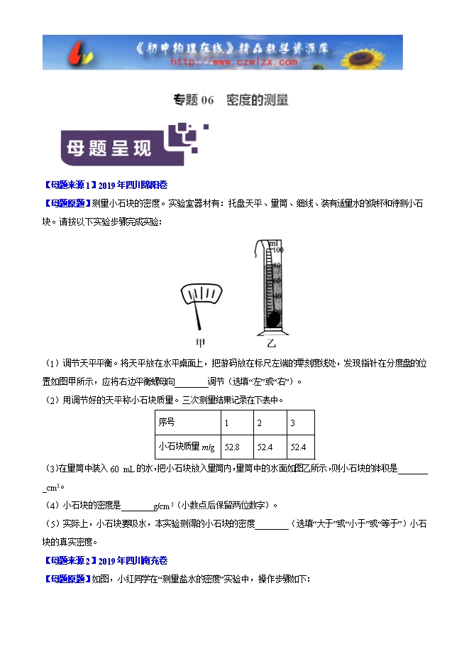 2019年中考物理母题题源系列:专题06 密度的测量(word原卷版和解析版)