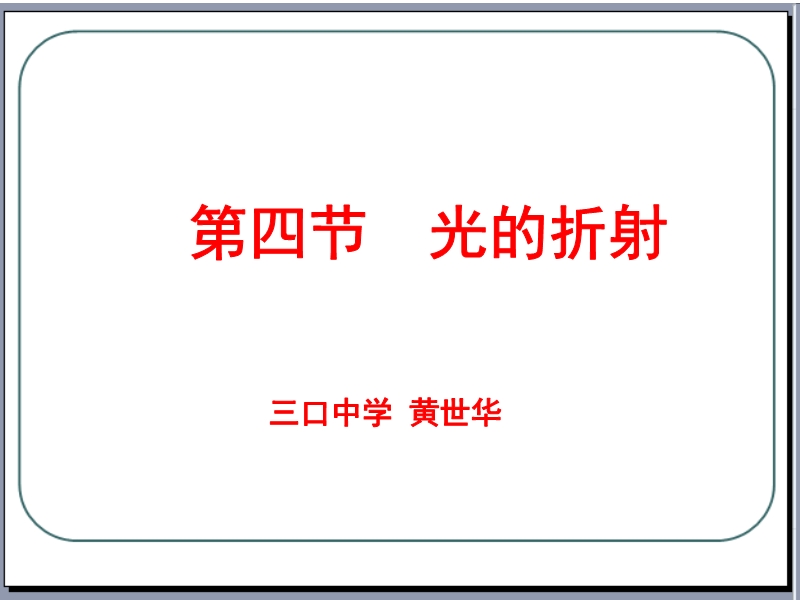 - 723第十三届全国中学物理青年教师大赛初中组一等奖课例11:4.4《光的折射》(海南 杜攀)