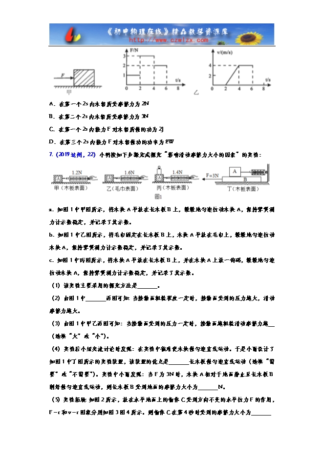 2019年中考物理试题分类汇编(五)——26运动和力图像分析专题(word版含答案)