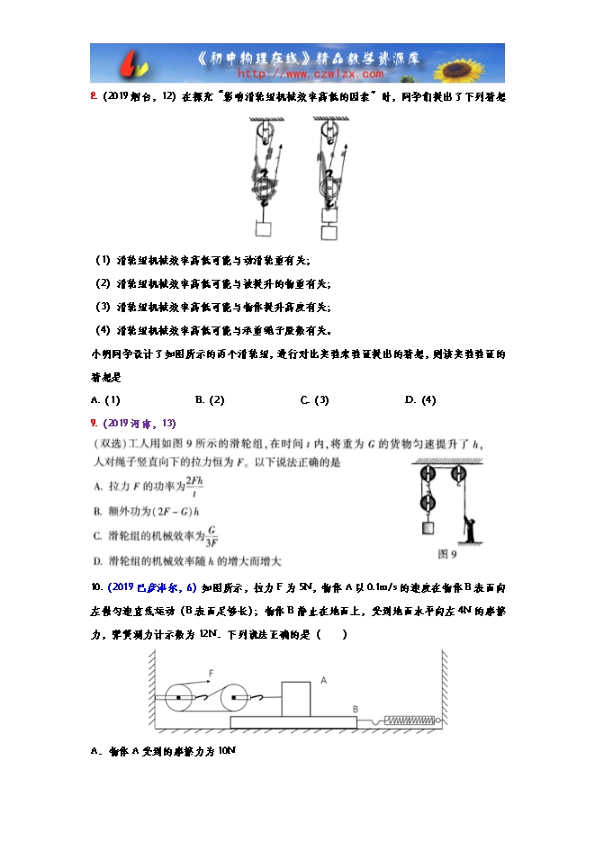 2019年中考物理试题分类汇编(五)——35机械效率专题(word版含答案)