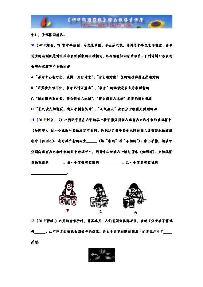 2019年中考物理真题分类汇编(六)——2.分子热运动专题(word版含答案)