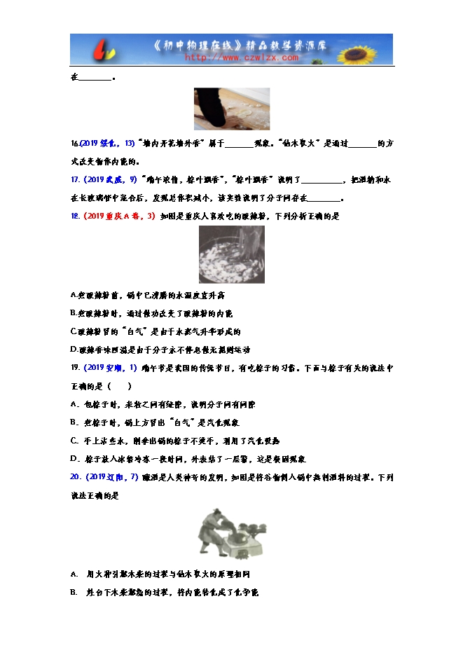 2019年中考物理真题分类汇编(六)——30.传统文化中的物理专题(word版含答案)