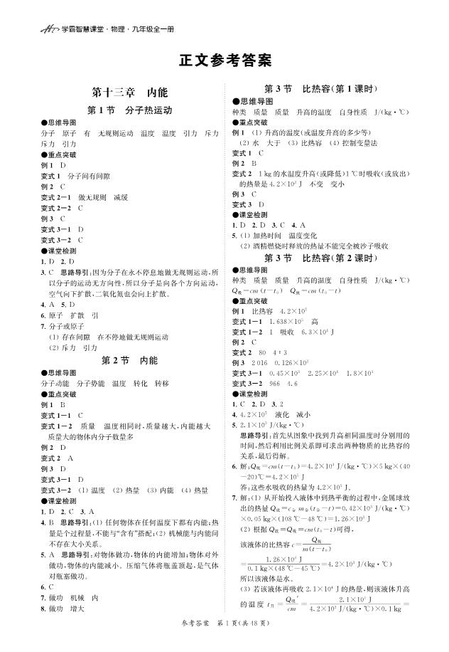 【学霸智慧课堂】2019-2020学年九年级物理全册(人教版,打包导学案,pdf版)