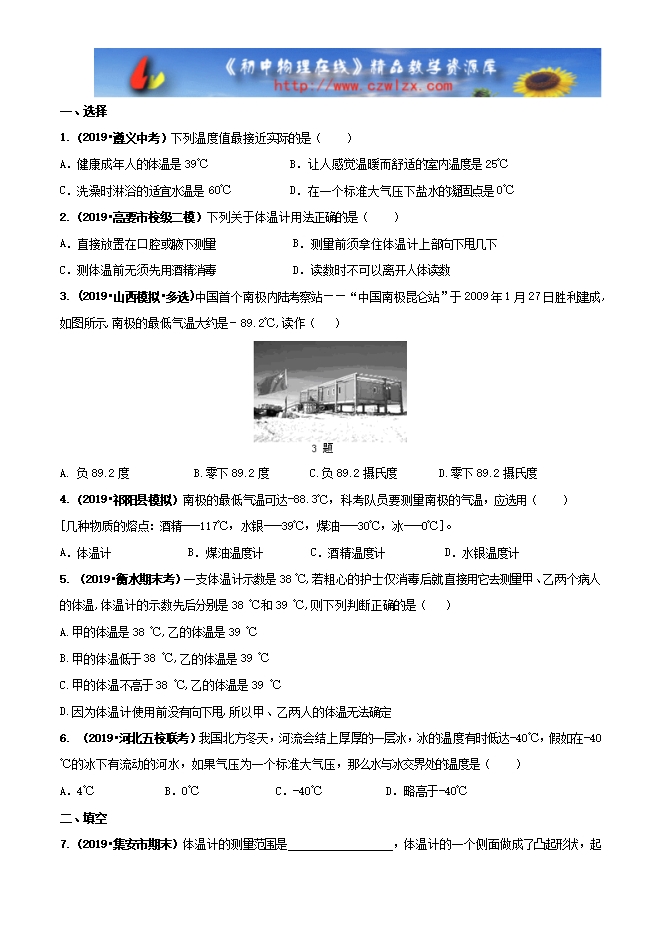 - 769【轻松假期与提升】沪科版2020年暑假八年级物理预习练:14 温度与温度计(原卷版和解析版)