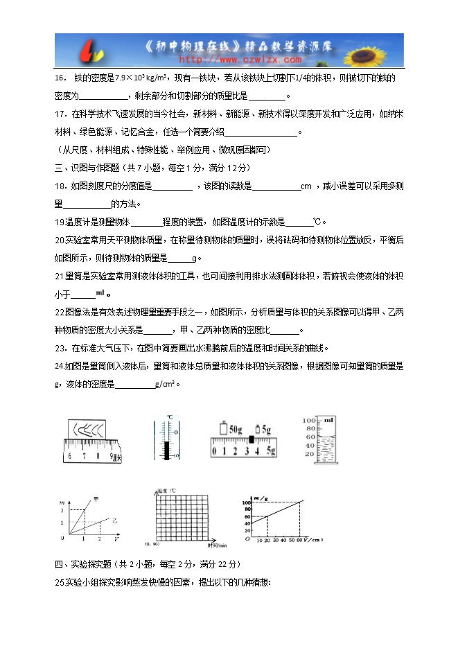 甘肃省景泰县第四中学2019-2020学年八年级上学期期中考试物理试题(无答案)