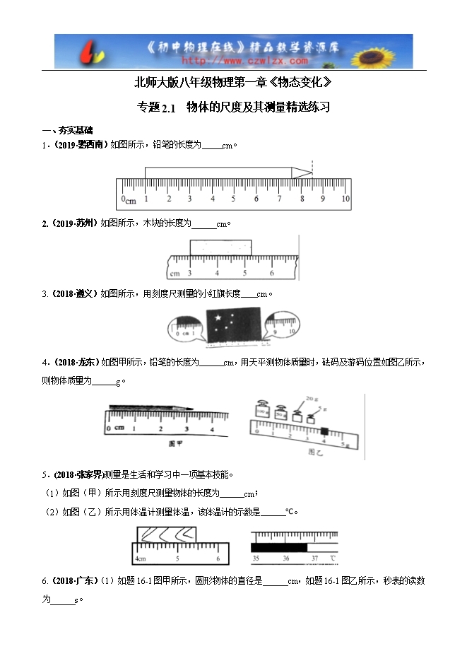 【内容简介】【精品】2019-2020学年北师大版八年级物理同步课堂:2.1物质的尺度及其测量(课件 精选练习)