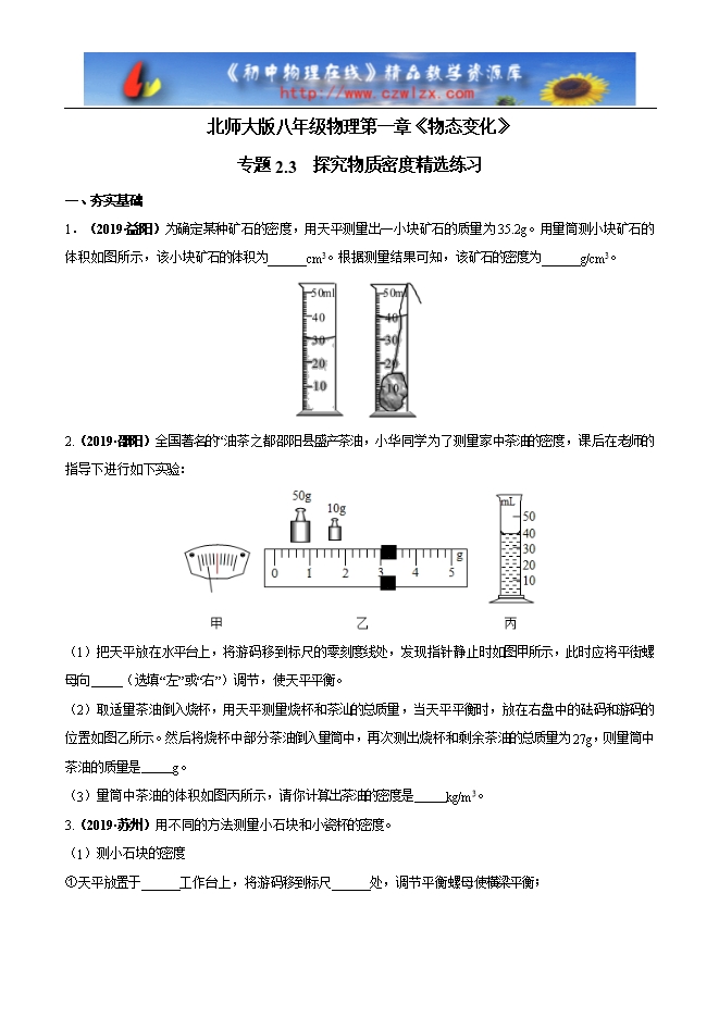 【内容简介】【精品】2019-2020学年北师大版八年级物理同步课堂:2.3探究物质的密度(课件 精选练习)