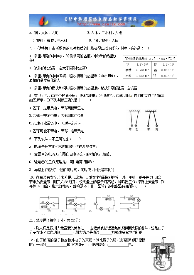 【内容简介】四川省广元市朝天区五校联考2020届九年级上学期第一次阶段性教学评估物理试题(附答案)