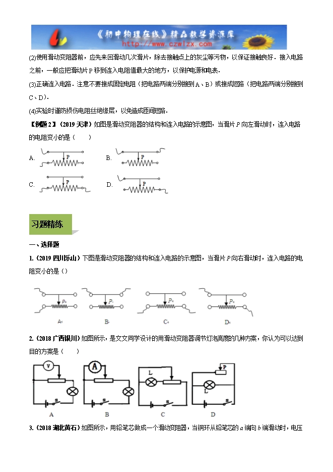 2019-2020学年九年级全一册物理精讲精练(人教版):专题16.4 电阻器(原卷版和解析版)