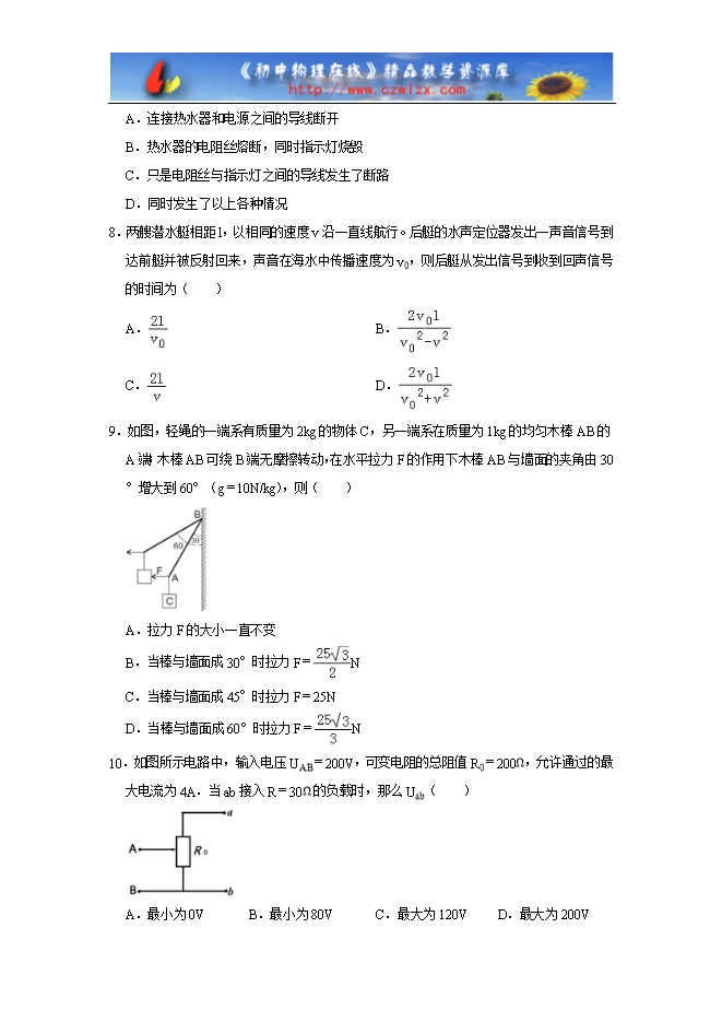 - 5802019年湖南省湖南师大附中初中物理竞赛试卷(word解析版)
