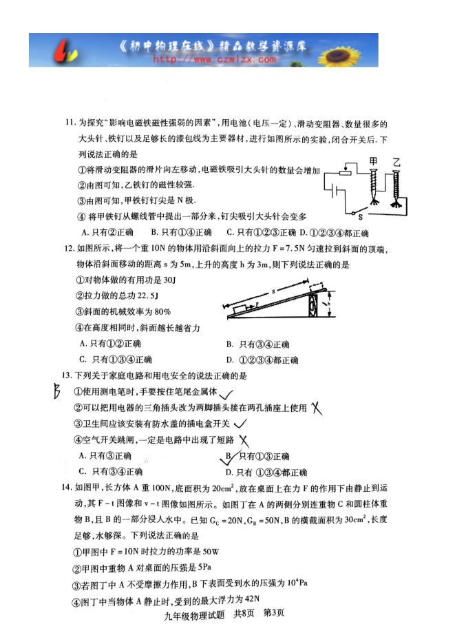 山东省泰安市岱岳区2019届九年级学科竞赛物理试题(图片版)