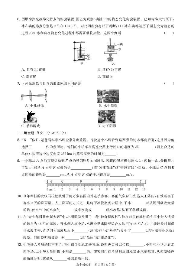 - 871【学霸智慧课堂】2019-2020学年八年级物理上册(人教版,周测卷,pdf版打包)
