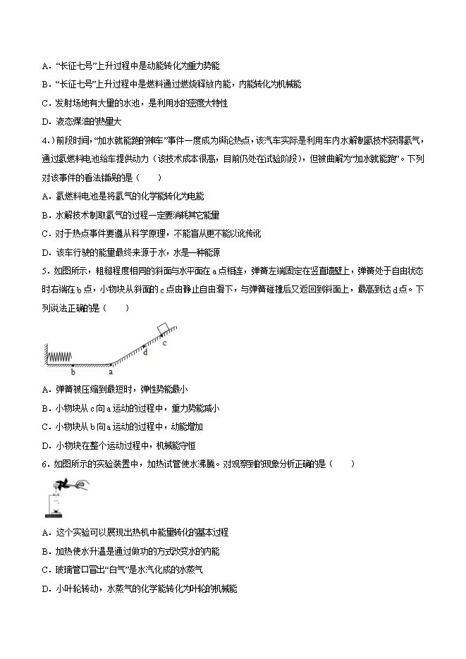 - 2902023-2024人教版九年级物理同步练:《14.3能量的转化和守恒》同步练2(附答案)