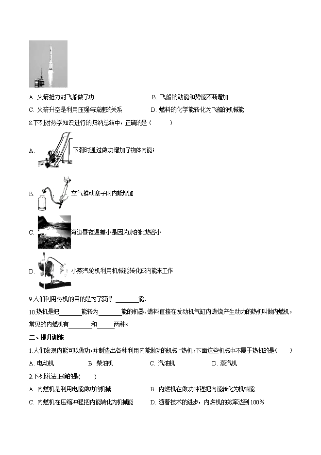 - 572023-2024人教版九年级物理同步练:《14.1热机》同步练2(附答案)