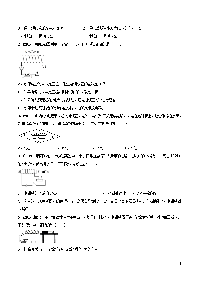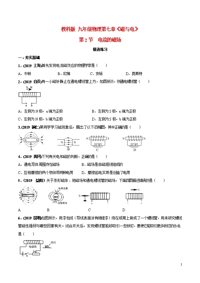 - 1075专题19 电流的磁场 原子 星系--【备战2021】上海中考物理精选考点专项突破题集(解析版和原卷…