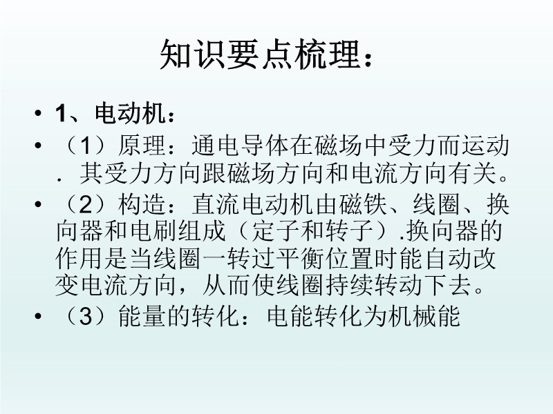 【内容简介】山东省临朐县沂山风景区大关初级中学九年级物理:20.5《电动机和发电机》复习课件(共19张PPT)