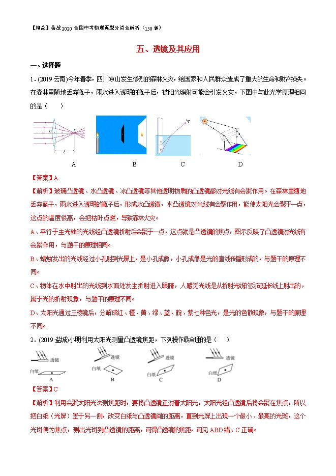 所属专辑: 【精品】备战2020全国中考物理真题分类全解析(150套)(44个专辑)