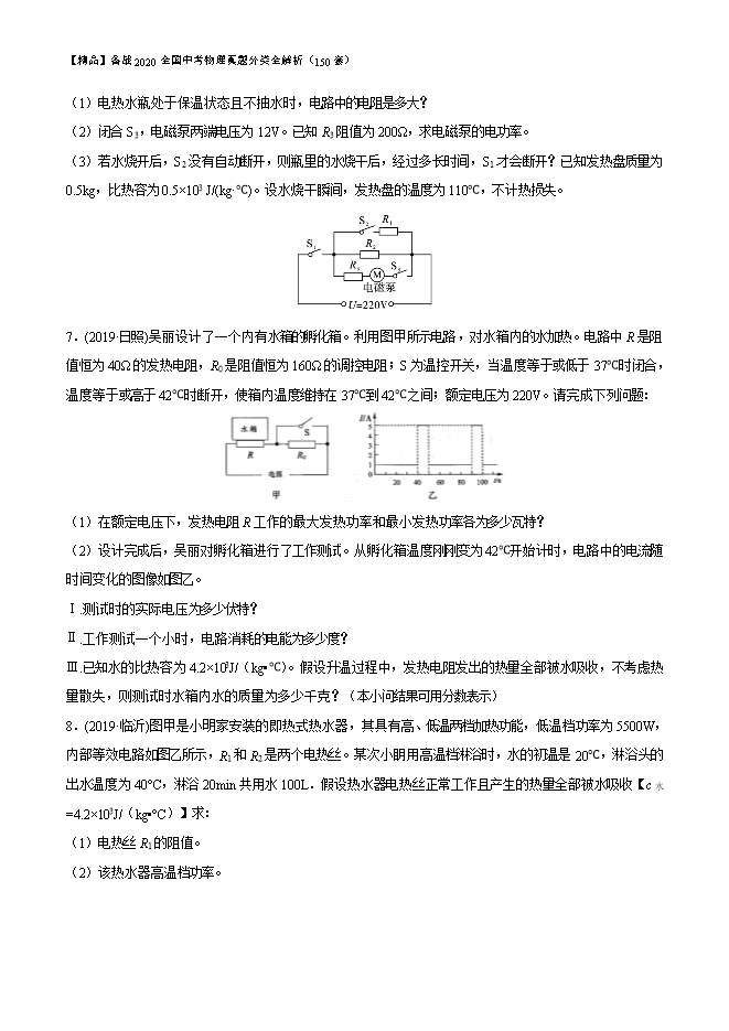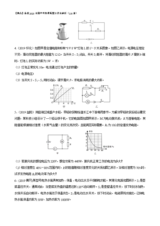 【精品】备战2020全国中考物理真题分类全解析(150套):专题2.20 电功率、电热综合计算(原卷版和解析版)