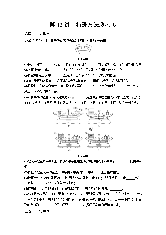 【内容简介】2020年福建省中考物理一轮基础考点一遍过(课件+精练):第12讲 特殊方法测密度 (共2份打包)