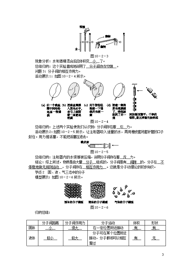 2020春沪粤版八年级物理下册导学设计:《10.2分子动理论的初步知识》