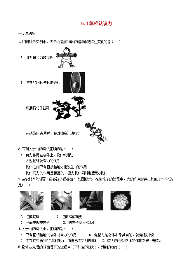 - 5552020春沪粤版八年级物理下册考点集训:6.1 怎样认识力(附答案)