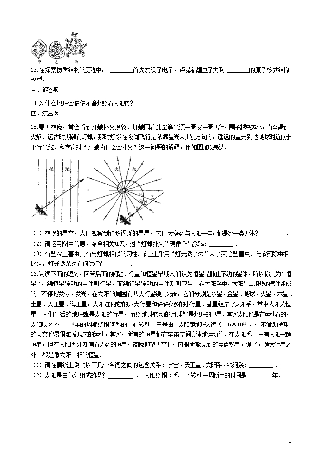 - 4572020春沪粤版八年级物理下册考点集训:10.5 宇宙深处(附答案)