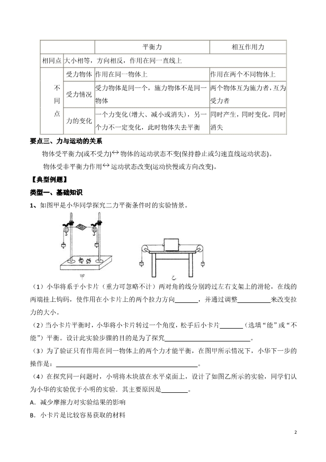 2019-2020学年第二学期沪粤版八年级物理(下)专题十一:探究物体受力时怎样运动 知识点总结及习题精练(PDF详解版)