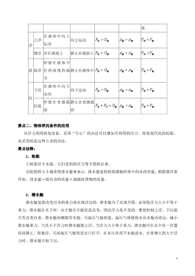 【内容简介】2019-2020学年第二学期沪粤版八年级物理(下)专题十九:物体的浮沉条件及应用 知识点总结及习题精练(PDF详解版)
