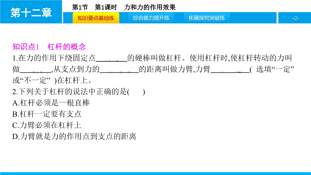 2020年春人教版物理八年级下册同步课件与分层精练:第十二章 简单机械 (共14份打包)