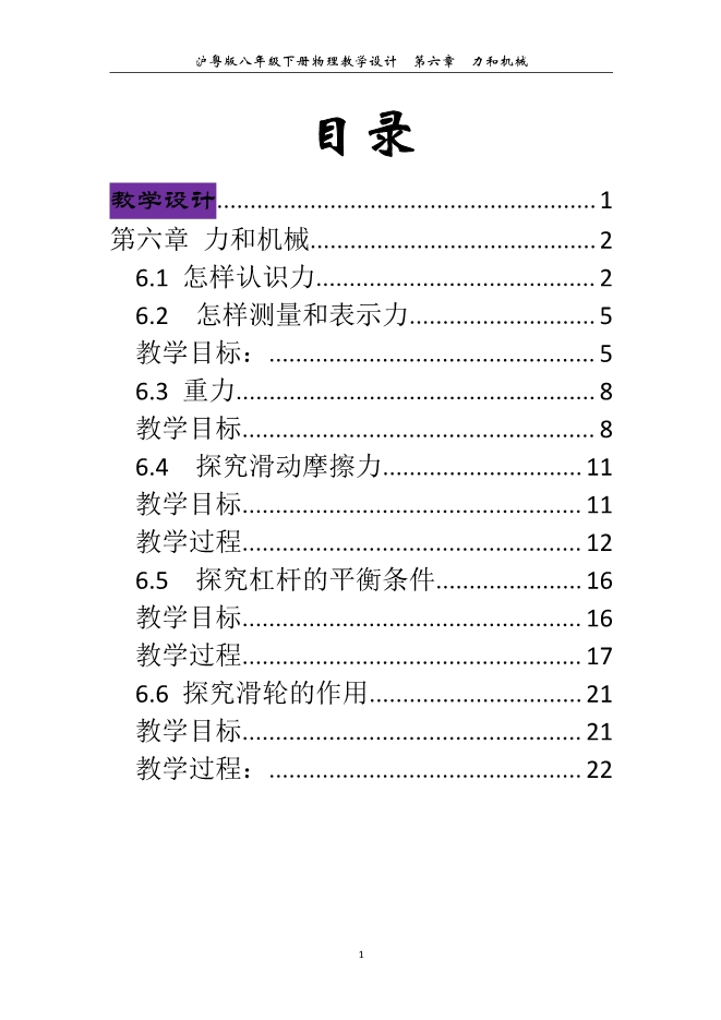 【内容简介】2019-2020学年沪粤版物理八年级下册第六章《力和机械》教学设计合集(PDF版)