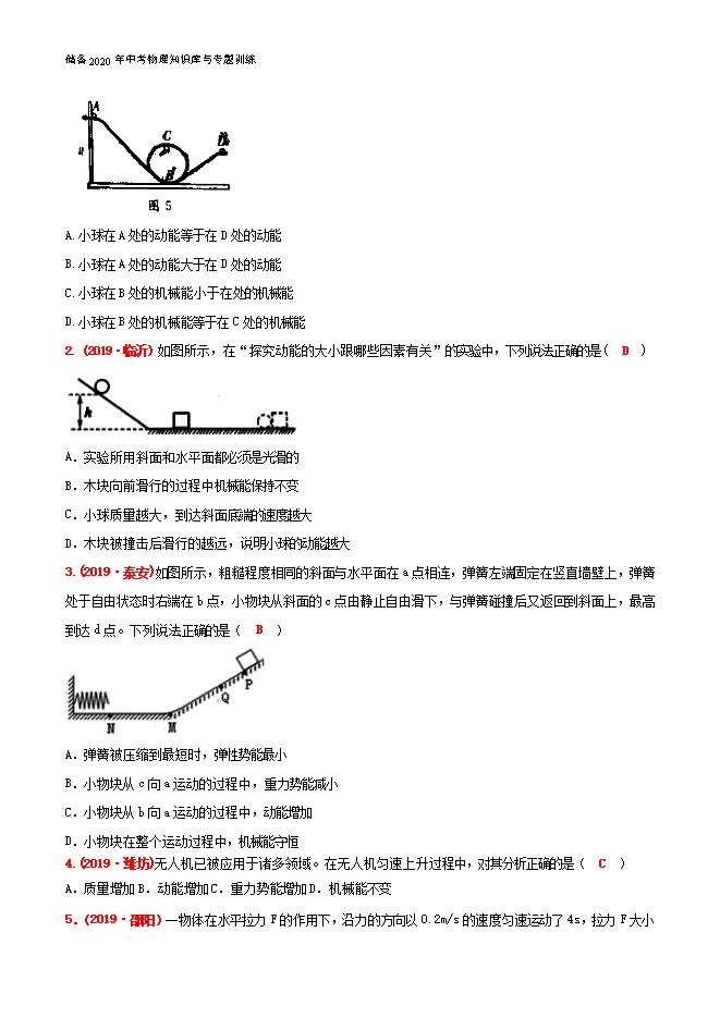 储备2020年中考物理知识库与专题训练:11.功和机械能