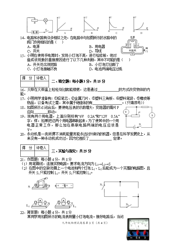 湖南省凤凰县2019年秋季九年级全能知识检测物理预赛试题卷(无答案)