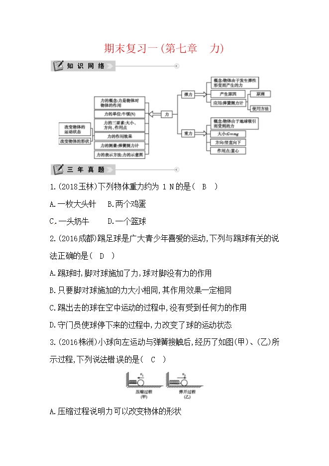 2020春人教版八年级物理下册练习:期末复习卷(共6套)