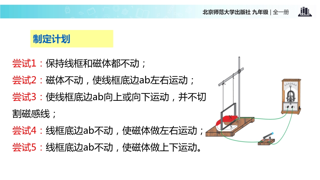 北师大物理九年级全一册ppt课件:《14.7学生实验:探究--感应电流的产生条件》