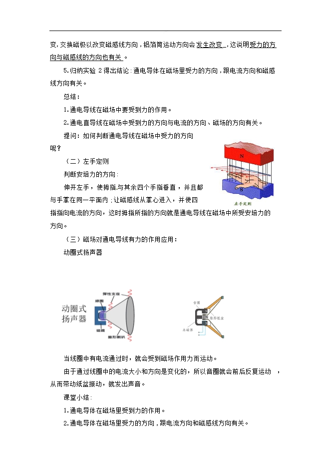 2019-2020北师大版九年级全册物理教案:《14.5磁场对通电导线的作用》(详案附教材分析和教学反思)
