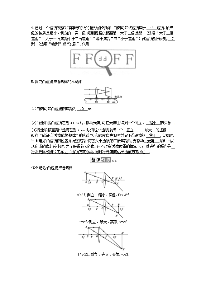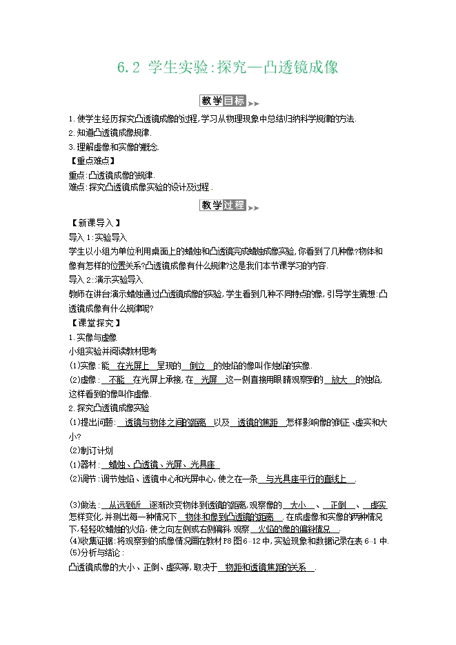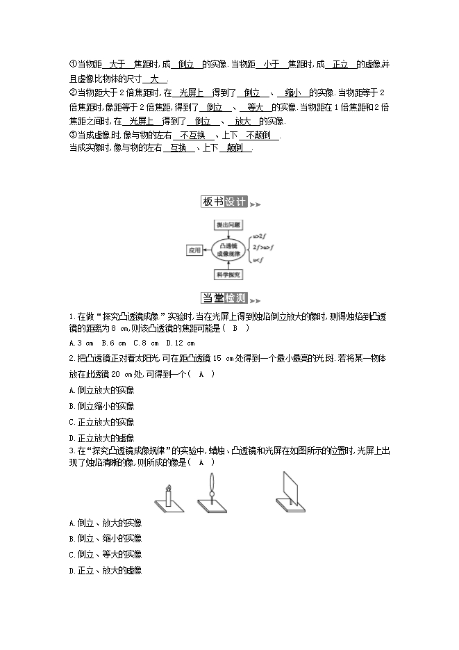 2020年春北师大版八年级下册物理教案:6.2 学生实验探究--凸透镜成像(附当堂检测题及备课参考资料)
