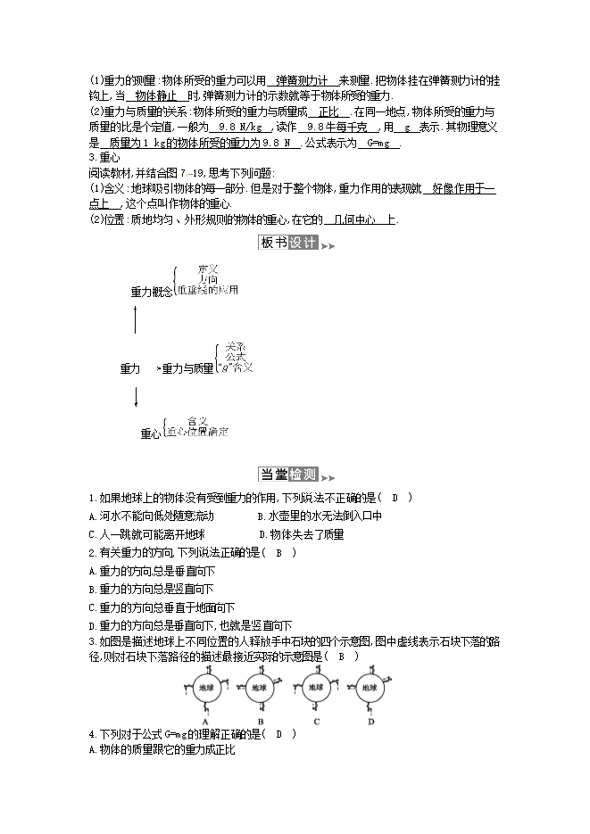 2020年春北师大版八年级下册物理教案:7.3 重力(附当堂检测题及备课参考资料)