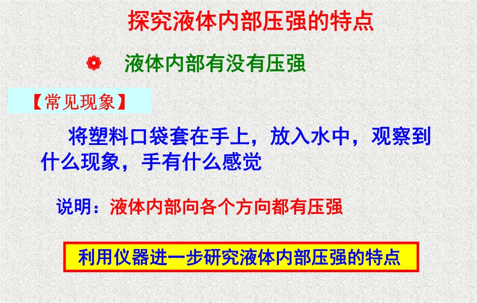- 473【安徽线上教学】沪粤版八年级物理下册《8.2 研究液体的压强(第1课时)》线上授课视频(王安平)