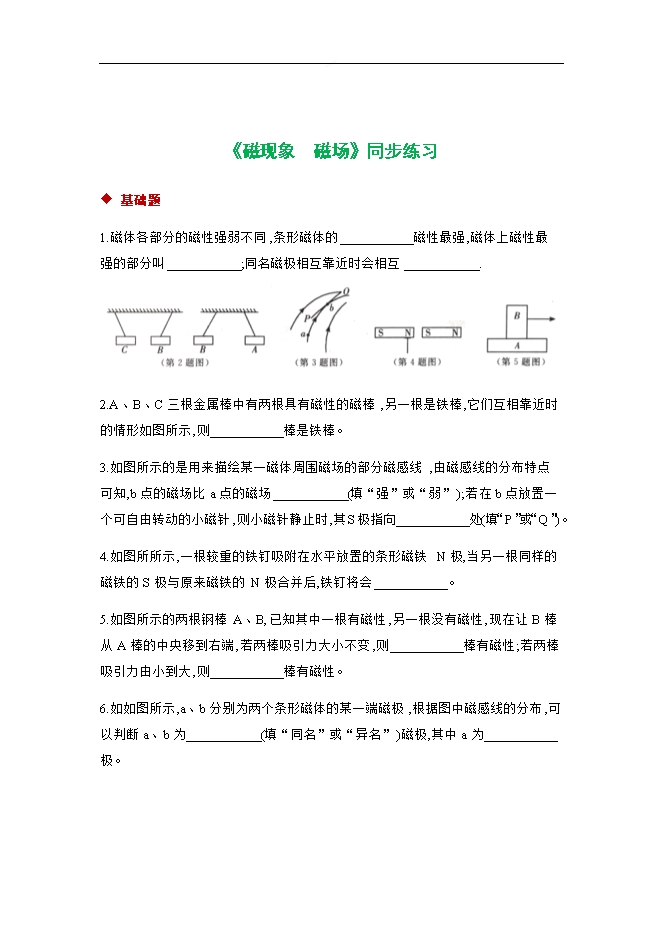 - 2582021秋人教版九年级物理全一册导学案:20.1 磁现象 磁场(含答案)