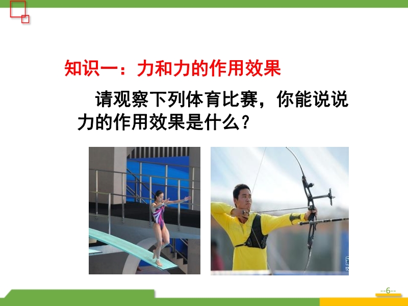 【内容简介】 同学们,我们经常提到力,如:火箭把嫦娥一号送入太空是因为有巨大的“推力”,上课要集中“注意力”,军队要提高“战斗力”等,这些力有什么不同呢? 力是一个很重要的物理概念,学完这一课,我们都能很好地认识它。(1)力是物体对物体的作用;(2)发生力的作用的两个物体,一个是施力物体,一个是受力物体。