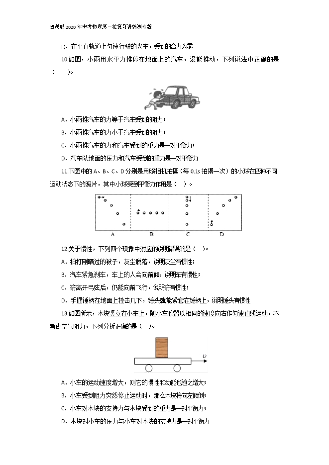 通用版2020年中考物理第一轮复习讲练测专题:9.运动和力(4份资料)